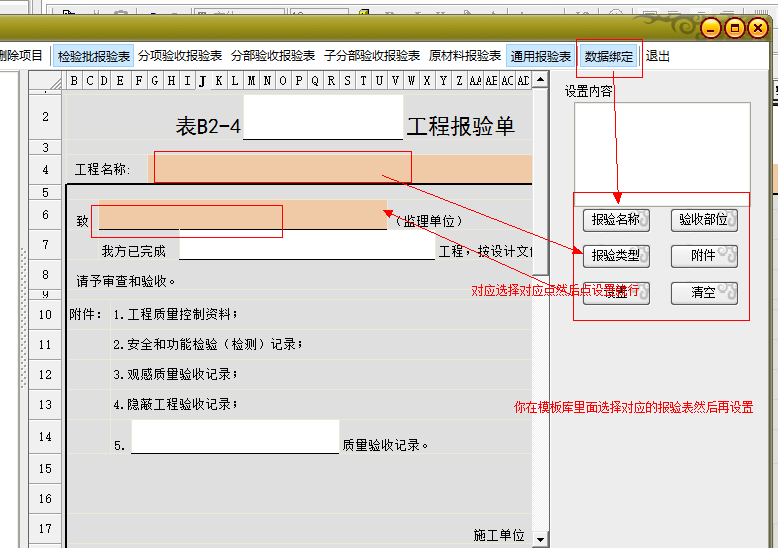 軟件上方有一個(gè)系統(tǒng)維護(hù)工程設(shè)置里面有報(bào)驗(yàn)表設(shè)置