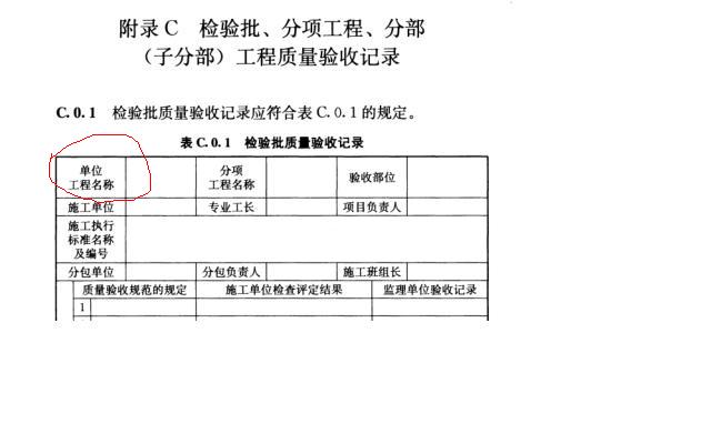 個人看法,按2012規(guī)范,檢驗批、分項要填“單位工程”,而分部和單位驗收填“工程名稱”