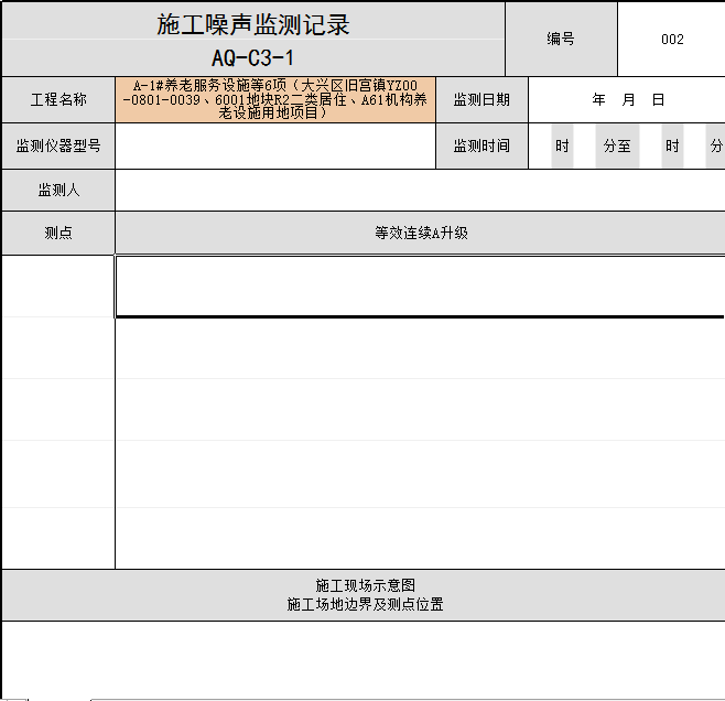 測(cè)點(diǎn)位置一般情況測(cè)點(diǎn)設(shè)在建筑施工場(chǎng)界外1m,高度1.2 m以上的位置。當(dāng)場(chǎng)界有圍墻且周圍有噪聲敏感建筑物時(shí),測(cè)點(diǎn)應(yīng)設(shè)在場(chǎng)界外1 m,高于圍墻0.5 m 以上的位置,且位于施工噪聲影響的聲照射區(qū)域。