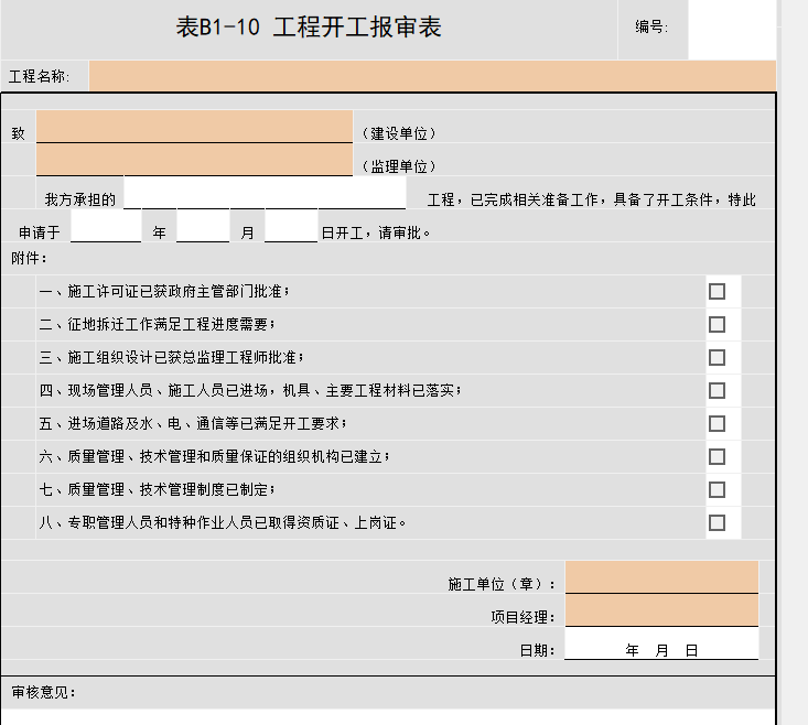 可以參照一下資料軟件里的開(kāi)工報(bào)審表所列附件: