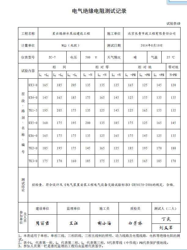 可參考國(guó)標(biāo)市政中的絕緣電阻測(cè)試記錄填寫一下。
