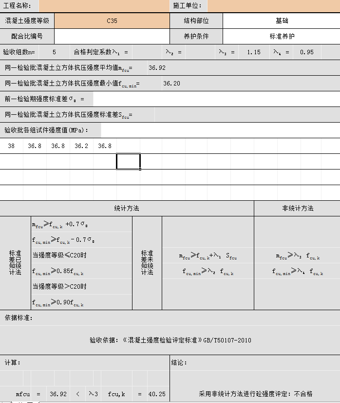 每組試塊強(qiáng)度大于等于設(shè)計(jì)強(qiáng)度的1.15倍才有保證評(píng)定合格
