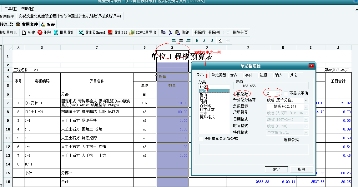 在報表里面選擇一列,右鍵單元格屬性,在數值里面修改小數位見下圖