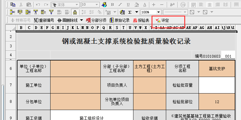 檢驗批表格的上面有評定按鈕