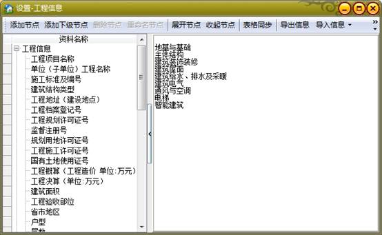 單擊菜單欄目"信息"中的工程信息即可進(jìn)行工程信息的錄入與修改。也可以在填表時(shí)在彈出的選擇窗口點(diǎn)編輯進(jìn)行增加或修改。