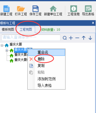 如果您是刪除一個大項目里面的 某個單位工程 在工程視圖里面 可以刪除