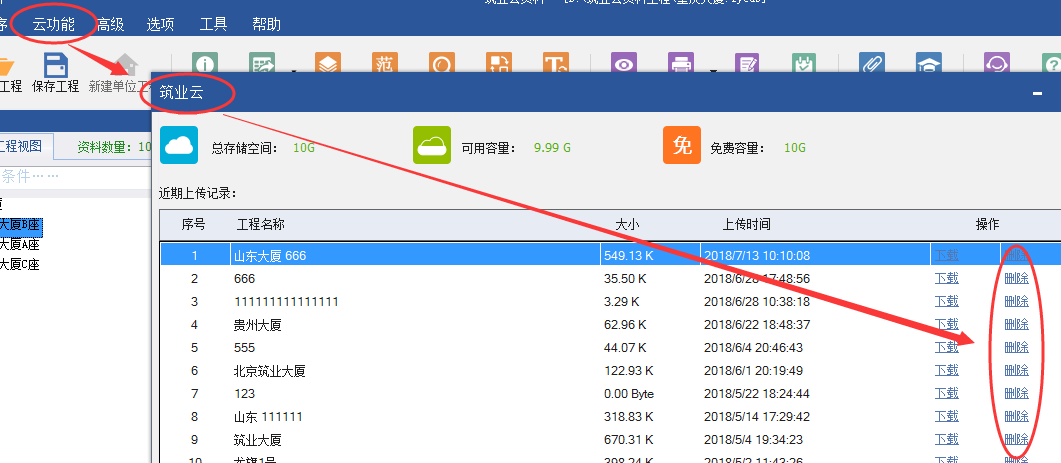 如果您是要 刪除整個大的工程文件 在云功能 筑業(yè)云 那里可以刪除