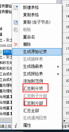 分部分項(xiàng)匯總?在左側(cè)目錄右擊一個(gè)檢驗(yàn)批,會(huì)出現(xiàn)