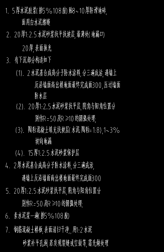 找平層—隔離層—(找平層—隔離層)下沉部分—找平層—磚面層(在建筑地面子分部中找)