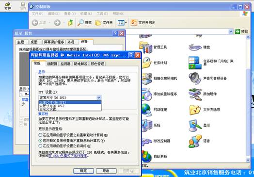 2)XP系統(tǒng)在控制面版里, 找到顯示(或我的電腦右擊)顯示設(shè)置,點(diǎn)高級(jí),常規(guī),DPI設(shè)置改成正常