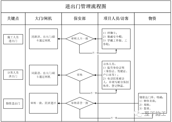 訪客或開會(huì)人員必須出示個(gè)人有效證件(身份證、居住證、駕駛證),先到門衛(wèi)處登記,電話聯(lián)系被訪人,經(jīng)警衛(wèi)人員同意并發(fā)訪客卡后方可進(jìn)入現(xiàn)場(chǎng)。同時(shí),訪客人員進(jìn)入施工現(xiàn)場(chǎng)時(shí)也要佩帶好基本的勞保用品。