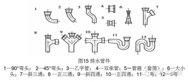 大便器、地漏等大口徑排出口的衛(wèi)生器具,采用P或S形存水彎(材質(zhì)與其管材材質(zhì)相同)。洗臉盆、浴盆等小口徑排出口的衛(wèi)生器具,采用玻璃鋼S,P形存水彎。90度彎頭以兩個(gè)45度彎頭代替。三、四通采用斜式。建筑物高度在6層之內(nèi)且衛(wèi)生器具(大便器)較少時(shí),可采用2個(gè)45度彎頭代替出戶大彎。