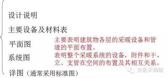 識(shí)圖順序:先采暖平面圖,再對照采暖平面圖識(shí)讀采暖系統(tǒng)圖后識(shí)讀詳圖。