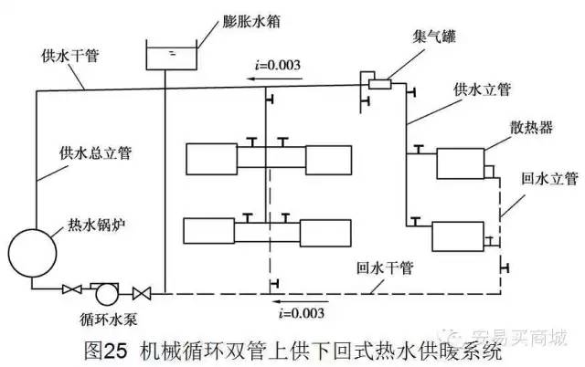 2. 機(jī)械循環(huán)上供下回式系統(tǒng)