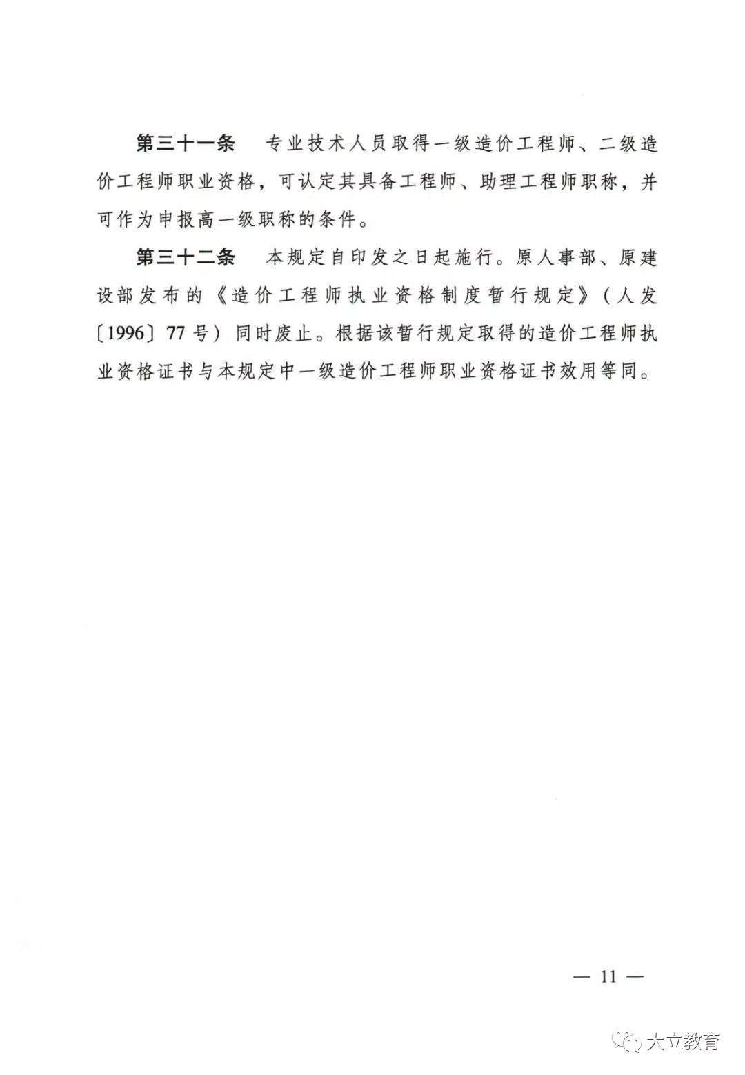 造價(jià)工程師執(zhí)業(yè)資格證書(shū)與本規(guī)定中一級(jí)造價(jià)工程師職業(yè)資格證書(shū)效用等同。