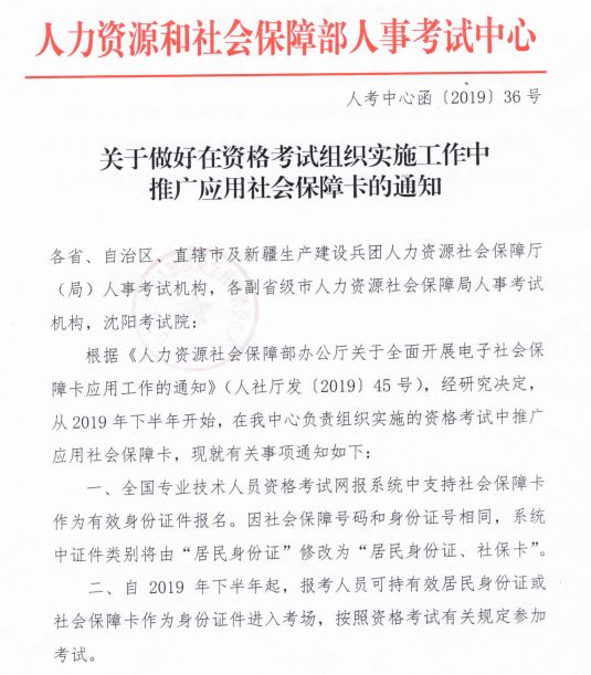 近日,人社部下發(fā)《關(guān)于做好在資格考試組織實(shí)施工作中推廣應(yīng)用社會(huì)保障卡的通知》,主要內(nèi)容如下: