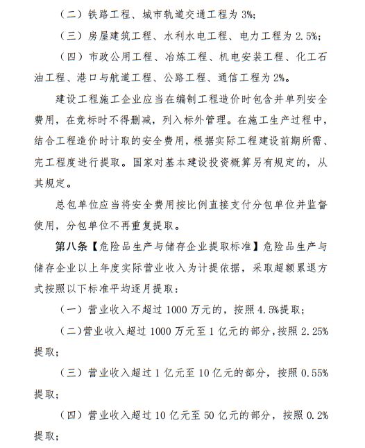 總包應(yīng)將安全費(fèi)按比例直接支付給分包單位,分包單位不再重復(fù)提取。
