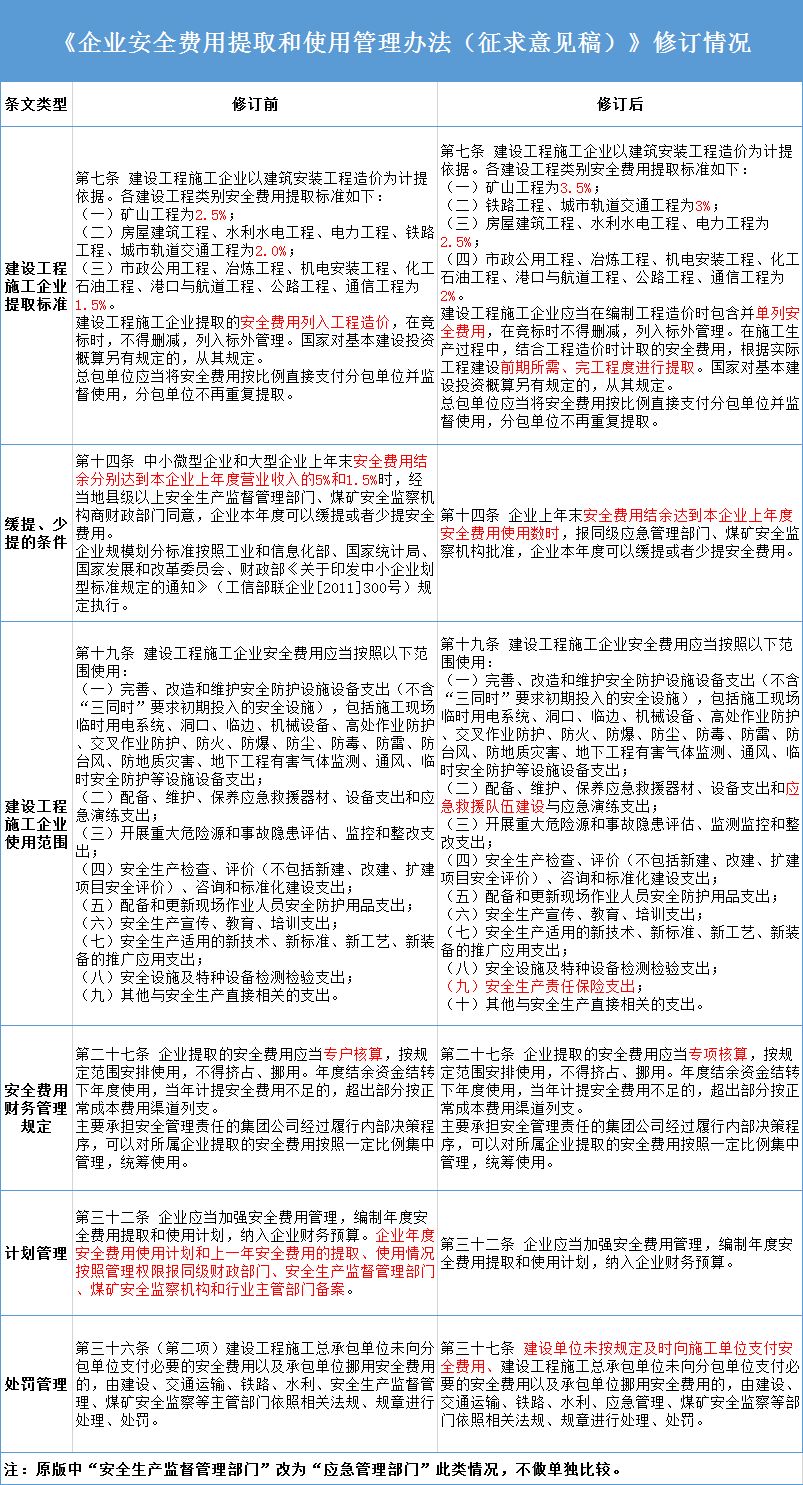 7月8日,應(yīng)急部發(fā)布《企業(yè)安全費(fèi)用提取和使用管理辦法(征求意見稿)》。新《辦法》提出: