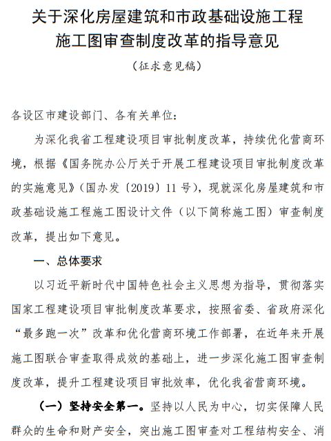 7月23日,浙江省住建廳發(fā)布《關(guān)于深化房屋建筑和市政基礎(chǔ)設(shè)施工程施工圖審查制度改革的指導(dǎo)意見(征求意見稿)》: