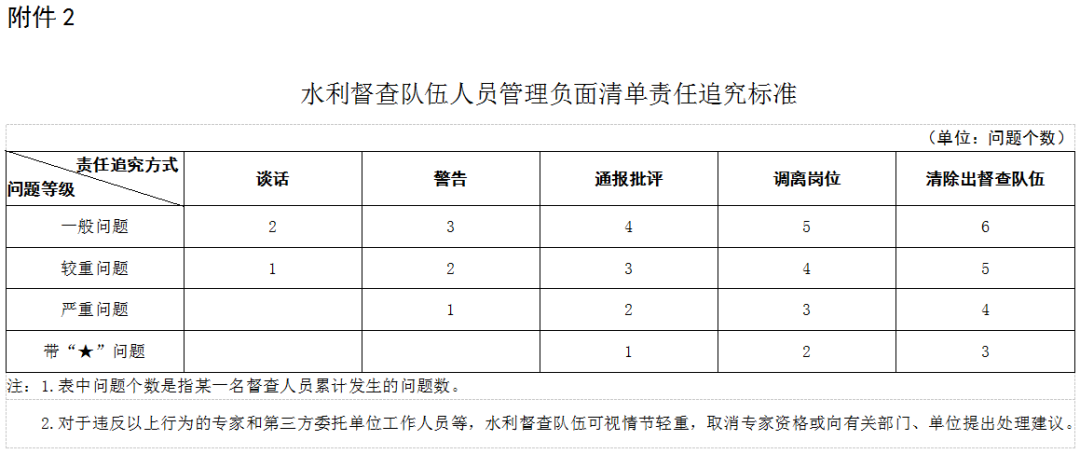 《水利監(jiān)督規(guī)定(試行)》 第一章 總 則 第一條 為強(qiáng)化水利行業(yè)監(jiān)管,履行水利監(jiān)督職責(zé),規(guī)范水利監(jiān)督行為,依據(jù)《中華人民共和國水法》等有關(guān)法律法規(guī)和《水利部職能配置、內(nèi)設(shè)機(jī)構(gòu)和人員編制規(guī)定》等有關(guān)文件規(guī)定,制定本規(guī)定。 第二條 本規(guī)定所稱水利監(jiān)督,是指水利部、各級水行政主管部門依照法定職責(zé)和程序,對本級及下級水行政主管部門、其他行使水行政管理職責(zé)的機(jī)構(gòu)及其所屬企事業(yè)單位履行職責(zé)、貫徹落實水利相關(guān)法律法規(guī)、規(guī)章、規(guī)范性文件和強(qiáng)制性標(biāo)準(zhǔn)等的監(jiān)督。 前款所稱“本級”包括內(nèi)設(shè)機(jī)構(gòu)和所屬單位。 第三條 水利監(jiān)督堅持依法依規(guī)、客觀公正、問題導(dǎo)向、分級負(fù)責(zé)、統(tǒng)籌協(xié)調(diào)的原則。 第四條 水利部統(tǒng)籌協(xié)調(diào)、組織指導(dǎo)全國水利監(jiān)督工作。 流域管理機(jī)構(gòu)依據(jù)職責(zé)和授權(quán),負(fù)責(zé)指定管轄范圍內(nèi)的水利監(jiān)督工作。 地方各級水行政主管部門按照管理權(quán)限,負(fù)責(zé)本行政區(qū)域內(nèi)的水利監(jiān)督工作。 第二章 范圍和事項 第五條 水利監(jiān)督包括:水旱災(zāi)害防御,水資源管理,河湖管理,水土保持,水利工程建設(shè)與安全運行,水利資金使用,水利政務(wù)以及水利重大政策、決策部署的貫徹落實等。 第六條 水利監(jiān)督事項主要包括: (一)江河湖泊綜合規(guī)劃、防洪規(guī)劃; (二)水資源開發(fā)、利用和保護(hù); (三)取水許可、用水效率管理; (四)河流、湖泊水域岸線保護(hù)和管理,河道采砂管理; (五)水土保持和水生態(tài)修復(fù); (六)跨流域調(diào)水、用水規(guī)劃、水量分配; (七)灌區(qū)、農(nóng)村供水和農(nóng)村水能資源開發(fā); (八)水旱災(zāi)害防御; (九)水利建設(shè)市場、水利工程建設(shè)與安全運行、安全生產(chǎn); (十)水利資金使用和投資計劃執(zhí)行; (十一)水利網(wǎng)絡(luò)安全及信息化建設(shè)和應(yīng)用; (十二)地表水、地下水等水利基礎(chǔ)設(shè)施監(jiān)測、運行和管理; (十三)水利工程移民及水庫移民后扶持政策落實; (十四)水政監(jiān)察和水行政執(zhí)法; (十五)水利扶貧; (十六)其他水利監(jiān)督事項。 第三章 機(jī)構(gòu)及職責(zé) 第七條 水利部成立水利督查工作領(lǐng)導(dǎo)小組,統(tǒng)籌協(xié)調(diào)全國水利監(jiān)督檢查,組織領(lǐng)導(dǎo)水利部監(jiān)督機(jī)構(gòu)。水利督查工作領(lǐng)導(dǎo)小組下設(shè)辦公室(簡稱“水利部督查辦”),指導(dǎo)水利部督查隊伍建設(shè)和管理,承擔(dān)水利督查工作領(lǐng)導(dǎo)小組交辦的日常工作。 各流域管理機(jī)構(gòu)成立相應(yīng)的水利督查工作領(lǐng)導(dǎo)小組,下設(shè)辦公室(簡稱“流域管理機(jī)構(gòu)督查辦”),組建流域管理機(jī)構(gòu)督查隊伍并承擔(dān)相應(yīng)職責(zé)。 本規(guī)定所稱“水利部監(jiān)督機(jī)構(gòu)”是指水利部督查辦,水利部具有相關(guān)職責(zé)的機(jī)關(guān)司局、事業(yè)單位、流域管理機(jī)構(gòu)督查辦、水行政執(zhí)法等相關(guān)單位。 第八條 水利部水利督查工作領(lǐng)導(dǎo)小組職責(zé): (一)決策水利監(jiān)督工作,規(guī)劃水利監(jiān)督重點任務(wù); (二)審定水利監(jiān)督規(guī)章制度; (三)領(lǐng)導(dǎo)水利督查隊伍建設(shè); (四)審定水利監(jiān)督計劃; (五)審議監(jiān)督檢查發(fā)現(xiàn)的重大問題; (六)研究重大問題的責(zé)任追究; (七)其他監(jiān)督職責(zé)。 第九條 水利部督查辦承擔(dān)水利督查工作領(lǐng)導(dǎo)小組日常工作,具體職責(zé): (一)統(tǒng)籌協(xié)調(diào)、歸口管理水利部各監(jiān)督機(jī)構(gòu)的監(jiān)督檢查任務(wù); (二)組織制定水利監(jiān)督檢查制度; (三)指導(dǎo)水利督查隊伍建設(shè)和管理; (四)組織制定水利監(jiān)督檢查計劃; (五)履行第六條相關(guān)事項的監(jiān)督檢查; (六)組織安排特定飛檢; (七)對監(jiān)督檢查發(fā)現(xiàn)問題提出整改及責(zé)任追究建議; (八)受理監(jiān)督檢查異議問題申訴; (九)完成領(lǐng)導(dǎo)小組交辦的其他工作。 第十條 水利部機(jī)關(guān)各司局按照各自職責(zé)提出本業(yè)務(wù)范圍內(nèi)的監(jiān)督檢查工作要求,組織指導(dǎo)相關(guān)事業(yè)單位開展重點工作、系統(tǒng)性問題的監(jiān)督檢查,組織指導(dǎo)問題整改,對加強(qiáng)行業(yè)管理提出政策性建議。 第十一條 水利部所屬相關(guān)事業(yè)單位,受機(jī)關(guān)司局委托承擔(dān)監(jiān)督檢查工作,具體職責(zé)為: (一)開展專項監(jiān)督檢查工作; (二)核查專項問題、系統(tǒng)性問題的整改情況; (三)匯總分析專項檢查成果,對重點工作、系統(tǒng)性問題提出整改意見建議; (四)配合水利部督查辦開展監(jiān)督檢查工作。 第十二條 流域管理機(jī)構(gòu)督查辦履行以下職責(zé): (一)負(fù)責(zé)指定流域片區(qū)內(nèi)綜合性監(jiān)督檢查工作; (二)配合水利部督查辦開展片區(qū)內(nèi)的監(jiān)督檢查工作; (三)受委托核查發(fā)現(xiàn)問題的地方水行