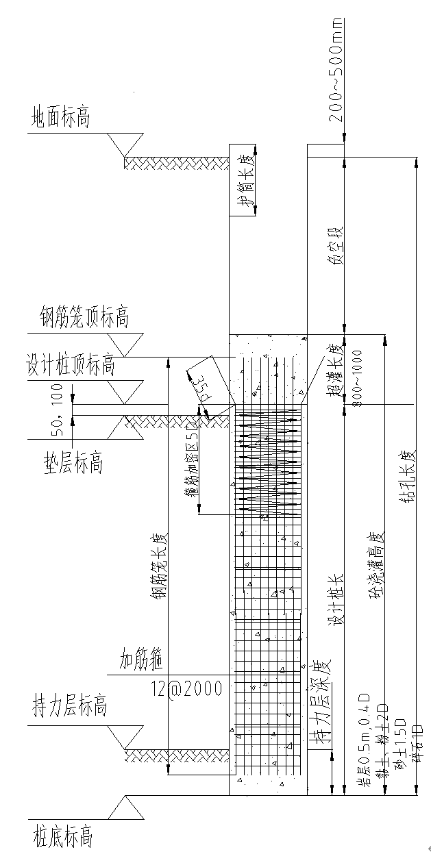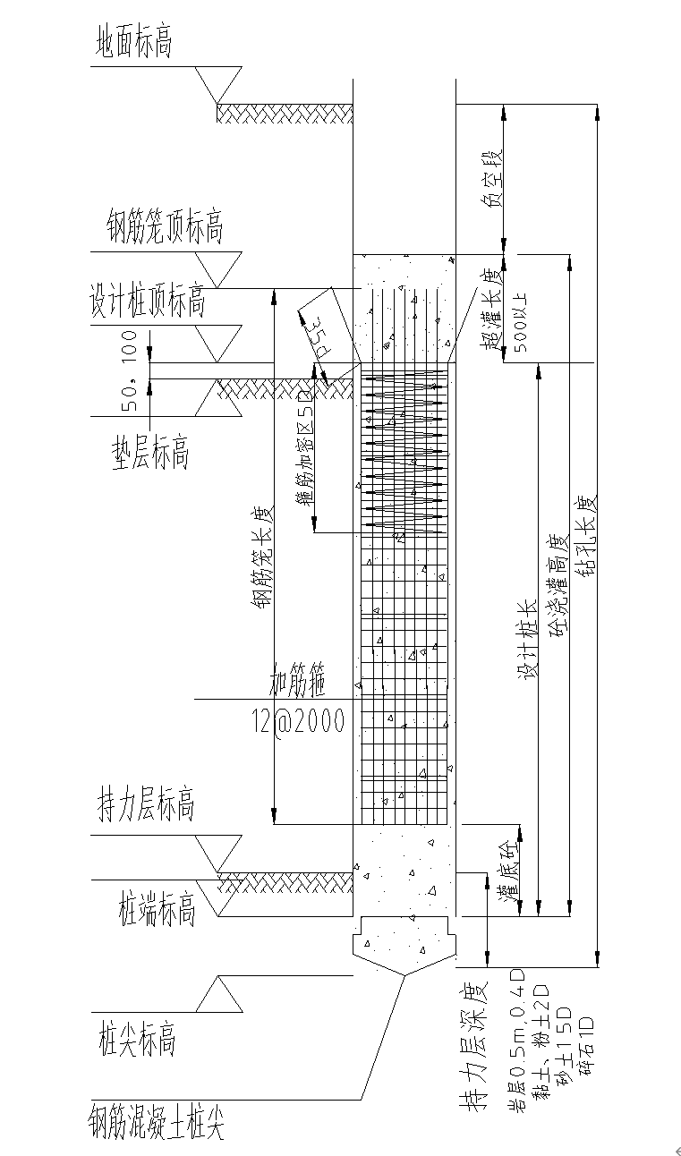 圖2  泥漿護壁灌注樁基構(gòu)造簡圖