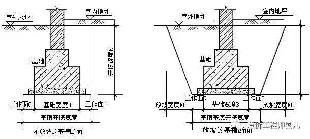 為保證工人的正常操作,基底寬度應(yīng)在基礎(chǔ)寬度的基礎(chǔ)上增加工作面寬度2C。