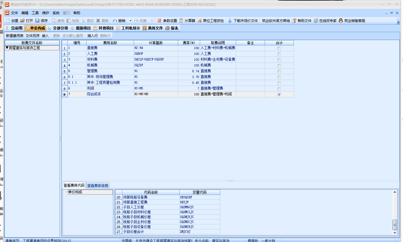 v3單價構(gòu)成中添加和刪除費用行