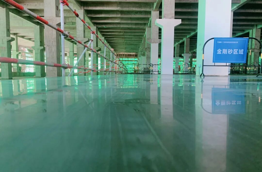 建星集團(tuán)深入踐行綠色發(fā)展理念,加快推進(jìn)轉(zhuǎn)型發(fā)展的新思路、新戰(zhàn)略,加強(qiáng)新技術(shù)、新工藝、新設(shè)備、新材料的研究,目前已在多個項(xiàng)目場景上應(yīng)用,不斷推動建筑業(yè)綠色、低碳、可持續(xù)發(fā)展,引領(lǐng)建筑產(chǎn)業(yè),建造美好未來。今天,讓我們一起走進(jìn)邁為技術(shù)珠海半導(dǎo)體裝備產(chǎn)業(yè)園(一期)項(xiàng)目現(xiàn)場,看看金剛砂一次成型施工技術(shù)的呈現(xiàn)效果。 建星集團(tuán)承建的邁為技術(shù)珠海半導(dǎo)體裝備產(chǎn)業(yè)園(一期)工程,是珠海市重點(diǎn)工程,也是邁為股份在珠海高新區(qū)“落子”的百億級項(xiàng)目,致力于打造成國內(nèi)頂級半導(dǎo)體高端裝備產(chǎn)業(yè)基地、資源基地。 金剛砂一次成型施工現(xiàn)場 金剛砂一次成型施工,是將找平層及面層施工合二為一,在混凝土地坪施工時,直接在面層均勻撒布金剛砂骨料,成型后,直接形成具有強(qiáng)化面層、抗壓性能好的耐磨地面。 邁為產(chǎn)業(yè)園建設(shè)為半導(dǎo)體機(jī)器設(shè)備加工車間,單層面積大,機(jī)器設(shè)備重精度要求高,對地面整平度,及整體觀感要求高。經(jīng)項(xiàng)目團(tuán)隊(duì)研討,決定將邁為產(chǎn)業(yè)園作為金剛砂一次成型新工藝的示范項(xiàng)目。 金剛砂一次成型顯現(xiàn)效果 邁為產(chǎn)業(yè)園金剛砂一次成型工藝應(yīng)用面積約11萬方,是建星集團(tuán)首次在工業(yè)廠房項(xiàng)目中大面積使用該工藝。工藝的運(yùn)用成型,深受上級主管部門和建設(shè)單位的一致好評。 地面特寫 項(xiàng)目團(tuán)隊(duì)相繼克服了平整度要求高、保護(hù)難度大、色差控制難、氣候影響大等前期施工重難點(diǎn), 加強(qiáng)工藝和質(zhì)量控制措施。從施工準(zhǔn)備、工序組織、過程控制、后期養(yǎng)護(hù)等方面,強(qiáng)化安全質(zhì)量管理,實(shí)行精細(xì)化放線和垂平控制,實(shí)現(xiàn)了金剛砂一次成型地面的完美呈現(xiàn)。 機(jī)械打磨 對比傳統(tǒng)二次澆筑,施工進(jìn)度方面,金剛砂一次成型工藝可省去地坪找平層,節(jié)約成本,增加樓層凈高,減少樓面荷載,抗壓強(qiáng)度大。不但提高整體地坪施工水平,而且能夠加快施工進(jìn)度和降低工程造價,其效益顯著。 完面收光 工程質(zhì)量方面,表面致密無裂紋、光潔照人,投入使用后整體體驗(yàn)感強(qiáng),避免二次澆筑后的開裂、脫層、起殼等多項(xiàng)瑕疵。 經(jīng)濟(jì)效益方面,通過應(yīng)用抹平機(jī)械,節(jié)省人工,提高施工工效。該工藝適用于廠房等大型公共建筑,以及單層建筑面積較大項(xiàng)目。
